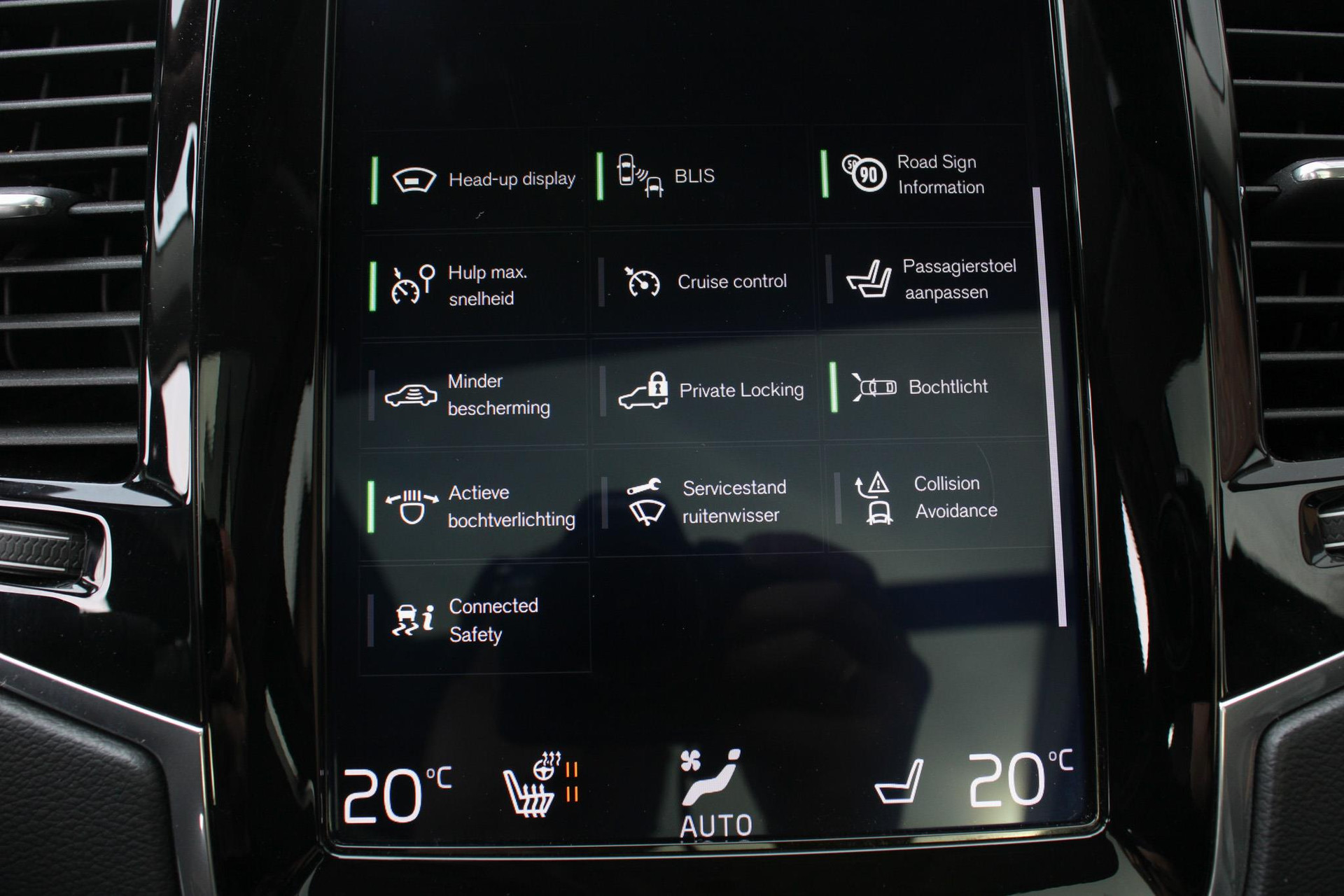 - Grafisch Head-up Display voor weergave van de ingestelde snelheid van de adaptieve cruise control, verkeersbordenherkenning en navigatie aanwijzingen